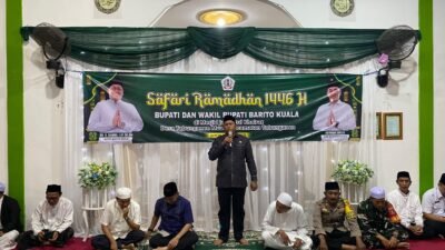 Banua Update, Barito Kuala – Bupati Barito Kuala, Dr. H. Bahrul Ilmi, S.H., M.H., melaksanakan Safari Ramadan di Masjid Jamiatul Khairat, Desa Tabunganen Muara, Kecamatan Tabunganen, Jumat (21/3). Kegiatan ini menjadi momen penting bagi pemerintah daerah untuk menjalin silaturahmi dan mempererat hubungan dengan masyarakat.