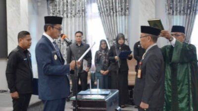 Banua Update, Balangan – Kepala Badan Kepegawaian dan Pengembangan Sumber Daya Manusia (BKPSDM) Kabupaten Balangan, H. Sufriannor, resmi dilantik sebagai Pejabat (Pj) Sekretaris Daerah Kabupaten Balangan. Pelantikan dilakukan oleh Wakil Bupati Balangan, H. Akhmad Fauzi, Kamis (15/5) di Aula Benteng Tundakan Setda Balangan.